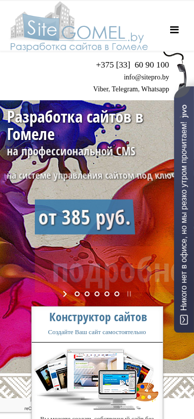 | SEO-описание | Разработка сайтов в Гомеле. Бесплатный конструктор сайтов.Создать сайт с профессиональной системой управления и обслуживанием. Заказать услуги по продвижению сайта. |