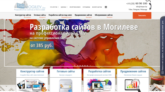 | SEO-описание | Разработка сайтов в Могилеве. Бесплатный конструктор сайтов.Создать сайт с профессиональной системой управления и обслуживанием. Заказать услуги по продвижению сайта. |