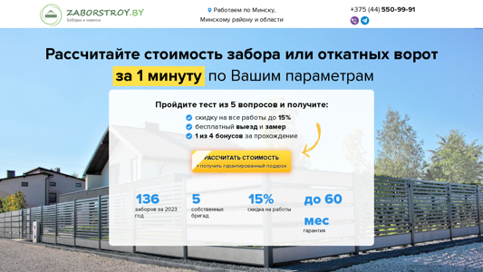 | SEO-описание | Заборы под "ключ любой" сложности в Минске и области. Доступные цены. Профессиональный монтаж. Быстро. Качественно. Звоните ☎ +375 (29) 170-99-91. |