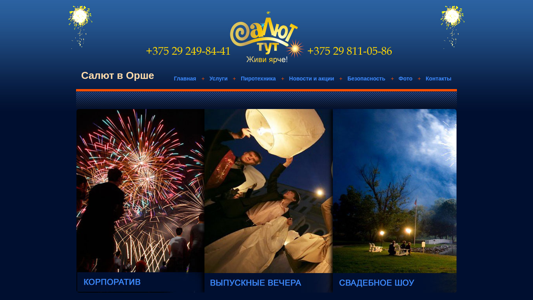 | SEO-лексика | орше салюты салют пиротехника ракеты чтобы праздник шоу тут фонтаны пиротехники был ведь только батареи фейерверков римские свечи петарды хлопушки |