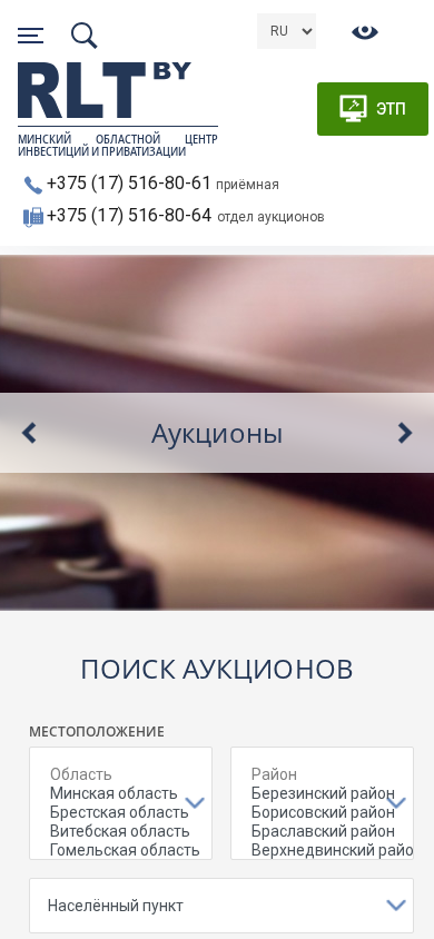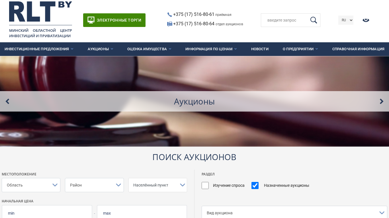 | SEO-описание | Минский областной центр инвестиций и приватизации. Оценка имущества, недвижимости и транспортных средств. Аукционы. Электронные аукционы. Объёмная база инвестиционных предложений. |