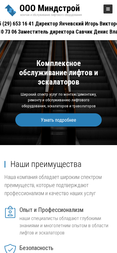 | SEO-описание | ⭐ Миндстрой - ✔ проектирование, ✔ монтаж и ✔ обслуживание ⏩ лифтов и ⏩ лифтового оборудования в Могилеве и по всей Беларуси. ✅ Надежность и безопасность. ✅ Опытные бригады. ✅ Гарантия. Заказывайте ☎️ +375 (29) 653 16 41 ! |