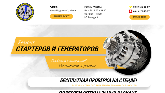 | SEO-описание | Полный спектр услуг по ремонту, замене стартеров и генераторов. Работаем без выходных, низкие цены на ремонт стартеров и генераторов всех авто. |