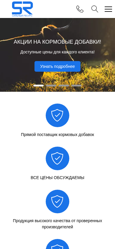 | SEO-описание | ООО «Сильный ресурс», предлагает широкий ассортимент кормов, премиксов и добавок для кормопроизводства по доступным ценам с доставкой по Беларуси. |