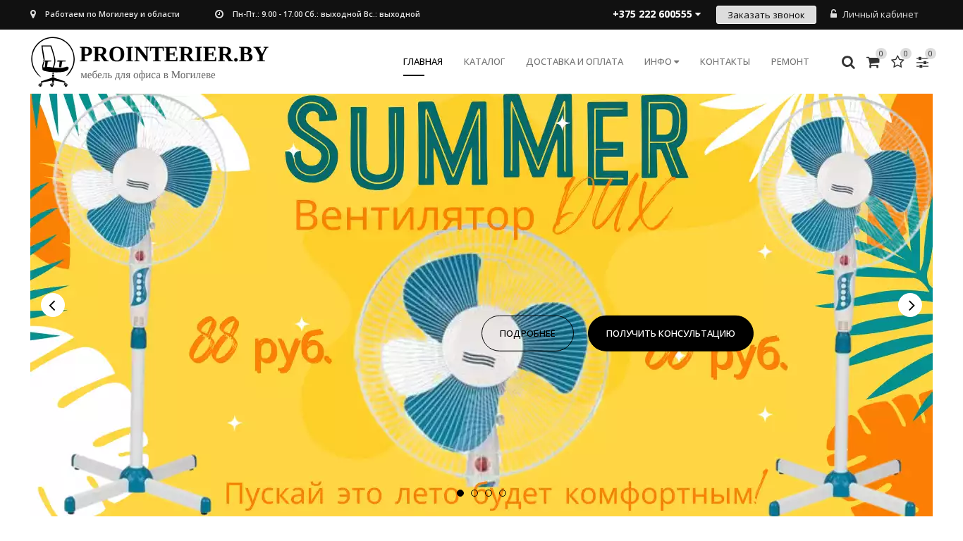 | SEO-описание | В интернет-магазине prointerier.by вы сможете найти большой ассортимент необходимой мебели по низким ценам для офиса и дома. В наличии и под заказ. Доставка. Сборка. Компания ПрофРегион Могилев оказывает услуги по ремонту офисной мебели, а так же поможет с подбором комплектующих. |