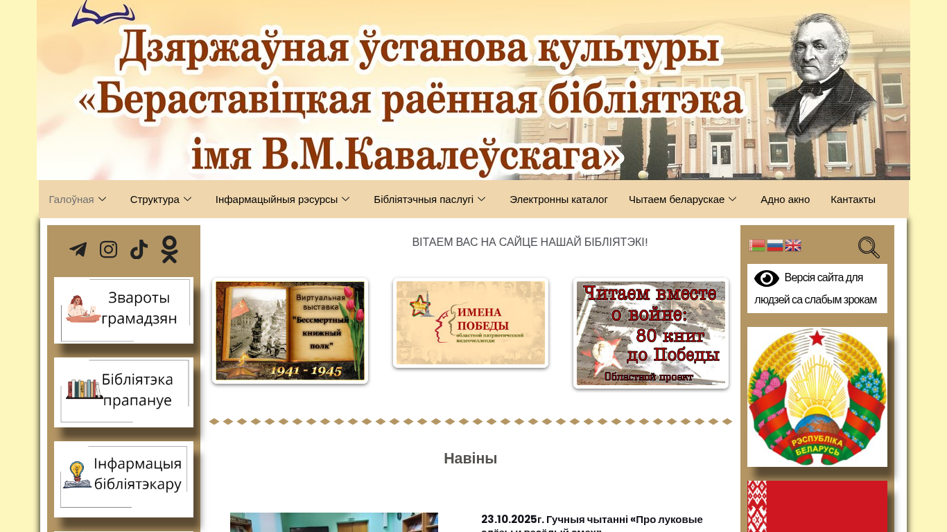 | Название / Заголовок | Государственное учреждение культуры "Берестовицкая районная библиотека имени О.М.Ковалевского" |