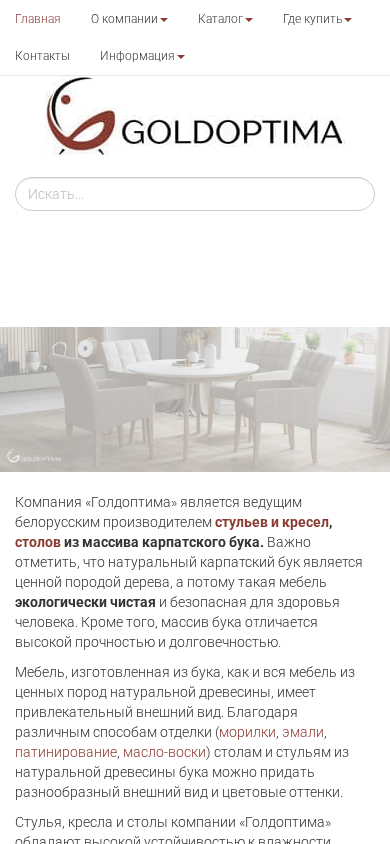 | SEO-описание | Компания «Голдоптима» является ведущим белорусским производителем стульев и кресел, столов, обеденных групп и мебели для зон ожидания из массива карпатского бука. |