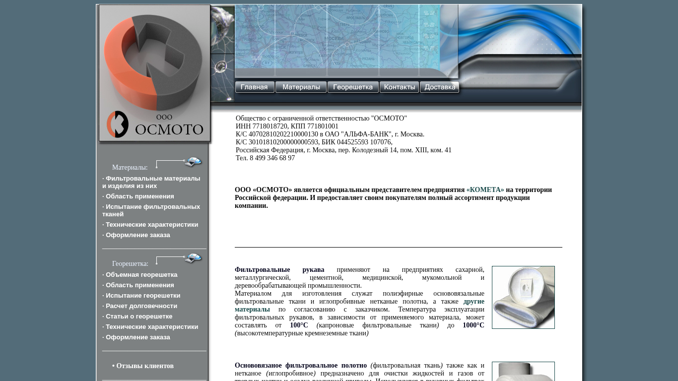| Название / Заголовок | Фильтровальные рукава, фильтровальные ткани, георешетка, анкеры. |
