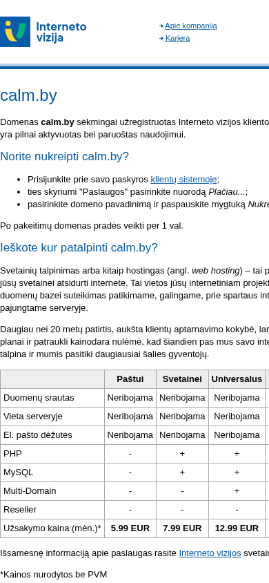 | Название / Заголовок | calm.by - Užregistruotas domenas - Interneto vizija |