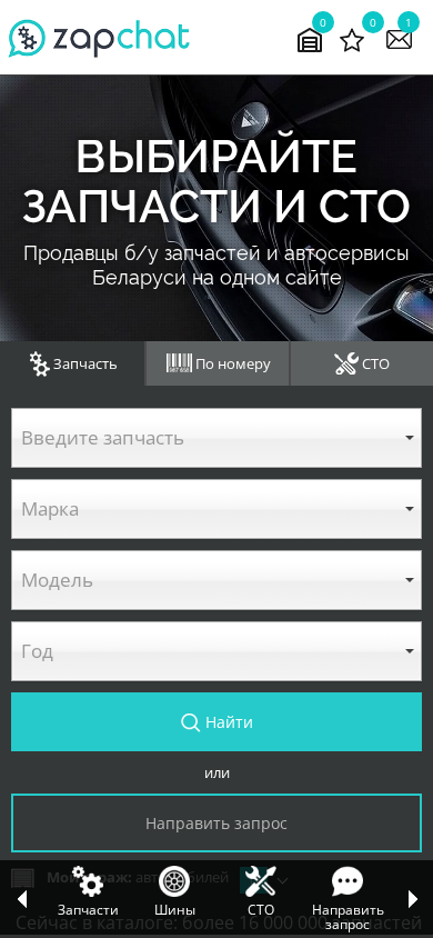 | SEO-описание | Продажа новых и б/у автозапчастей со всей Беларуси по приемлемым ценам в каталоге Запчат. Более 2 250 000 объявлений для всех видов авто! |