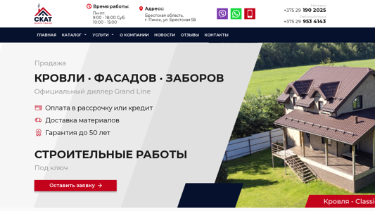 | Название / Заголовок | ООО СкатПартнер – Продажа строительных материалов в Пинске | Широкий ассортимент |