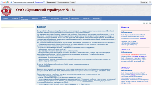| SEO-описание | Официальный сайт ОАО "Оршанский стройтрест № 18" содержит оперативную информацию, новости |