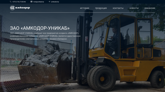 | SEO-описание | ЗАО «Амкодор-Уникаб» снабжает все предприятия холдинга «АМКОДОР» унифицированными кабинами. Является производителем складской техники. |