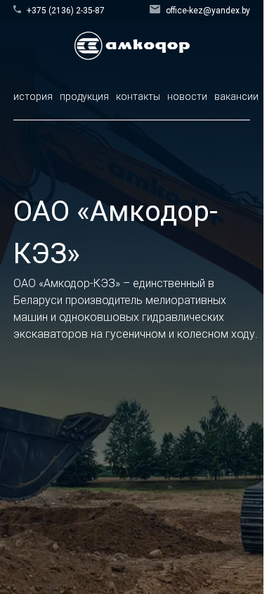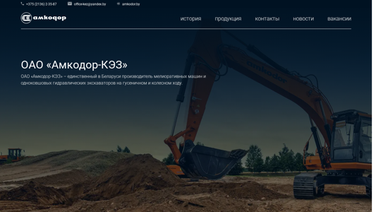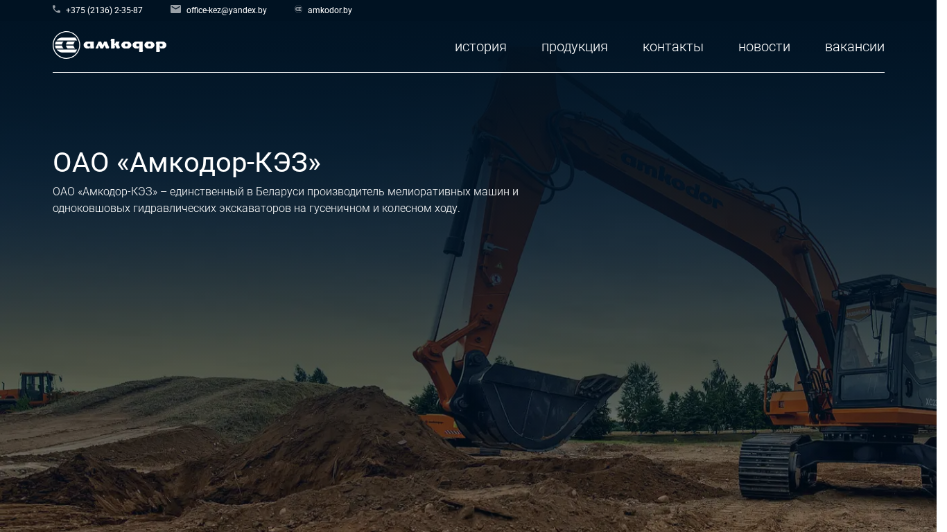 | SEO-описание | ОАО «Амкодор-КЭЗ» – единственный производитель мелиоративных машин и одноковшовых гидравлических экскаваторов на гусеничном и колесном ходу. |