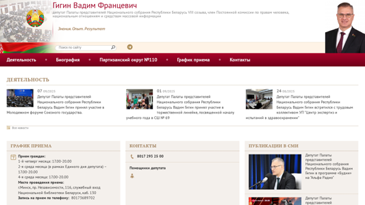| Название / Заголовок | Депутат Палаты представителей Национального собрания Республики Беларусь седьмого созыва. Официальный сайт |
