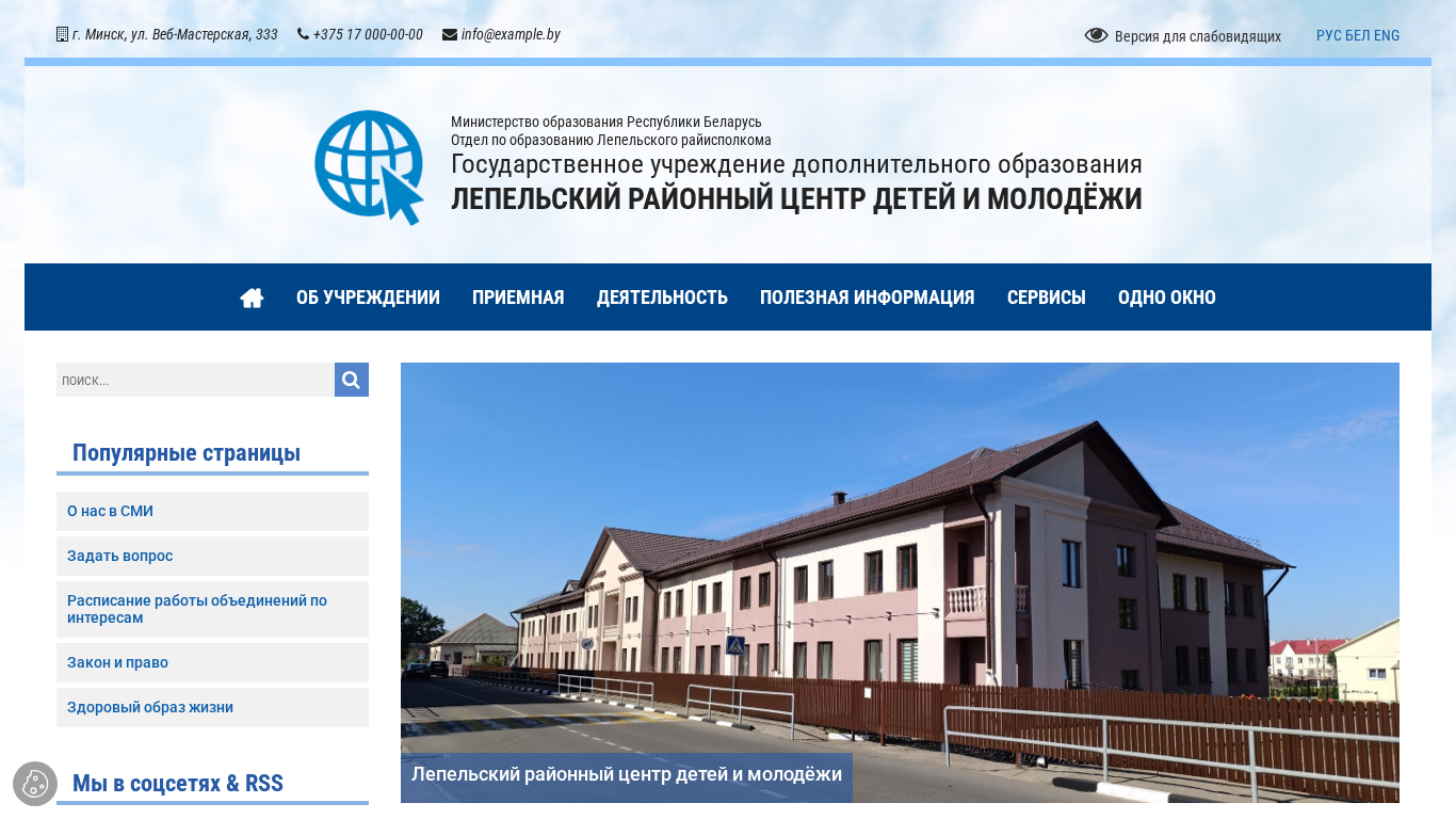 | Название / Заголовок | Лепельский районный центр детей и молодежи |