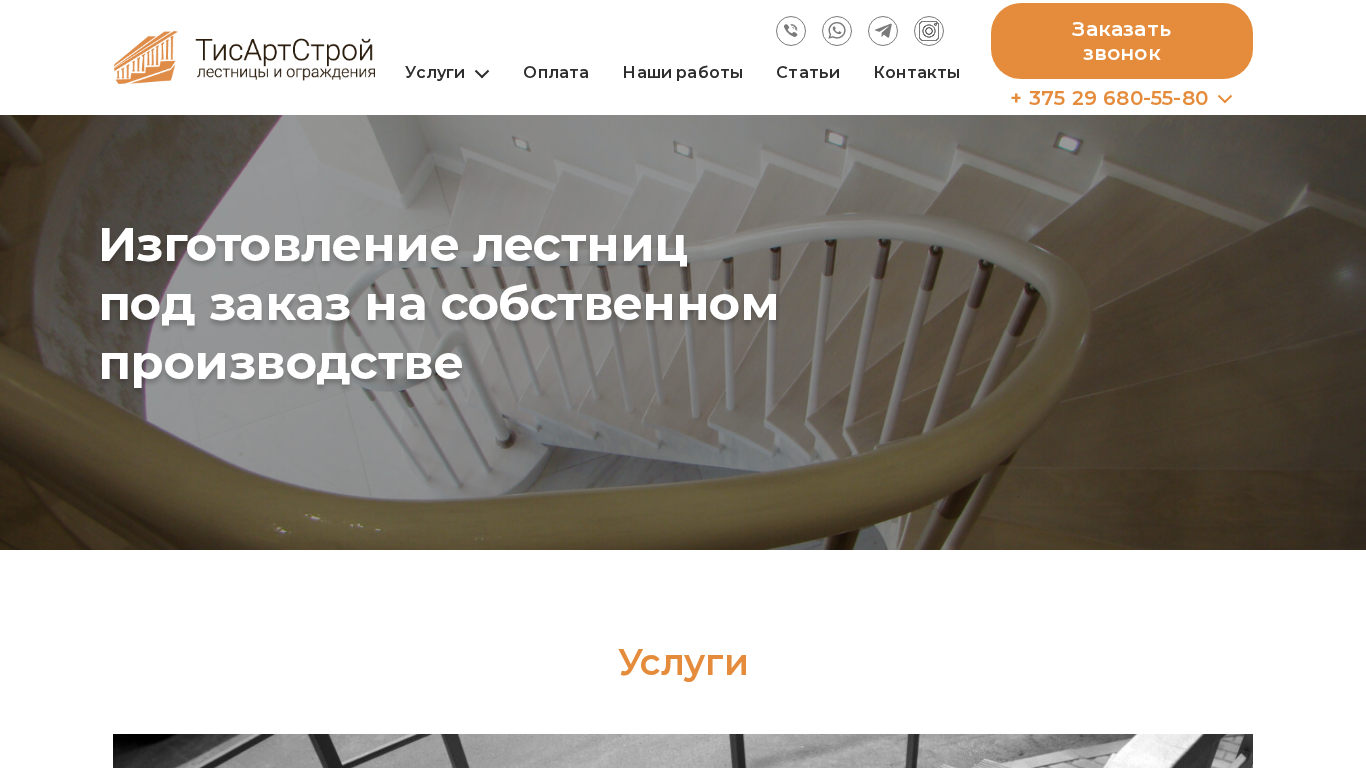 | SEO-описание | Изготовление лестниц на собственном производстве. Заказать ограждение и навесы по телефону ☎ Звоните + 375 29 680-55-80 |