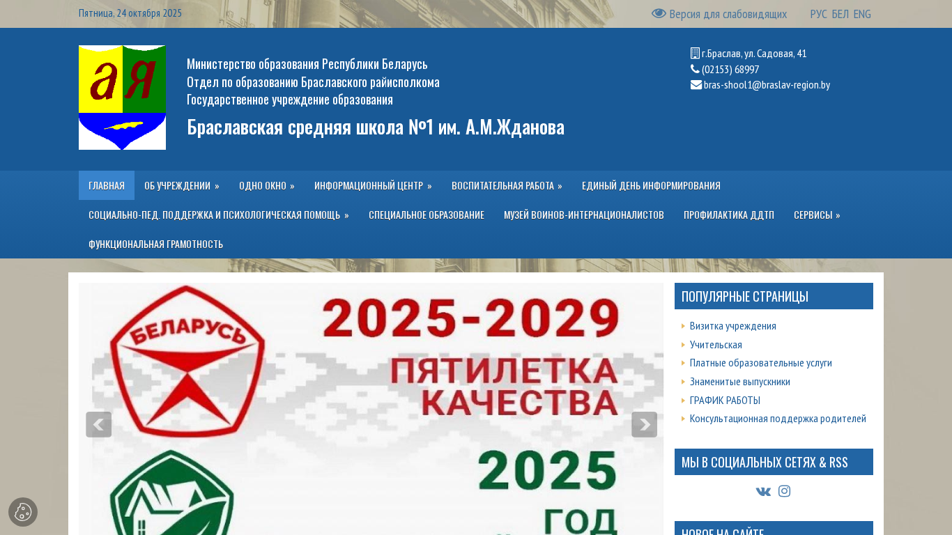 | Название / Заголовок | ГУО "Браславская средняя школа №1 им. А.М.Жданова" |