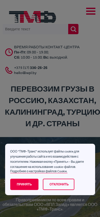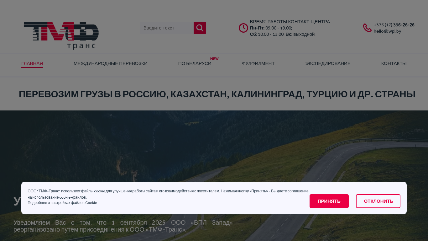| SEO-описание | Доставка сборных грузов по всей Беларуси от 1 кг. Цены от 8 руб. Транспортная компания ТМФ-транс - это надежные грузоперевозки точно в срок! |