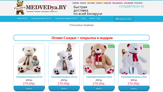 | SEO-описание | Купить плюшевых медведей в Минске с доставкой по Беларуси в интернет-магазине kupit-medvedya.by ⭐ Большие мягкие плюшевые мишки - идеальный подарок для ваших близких ⭐ 5 лет на рынке. |
