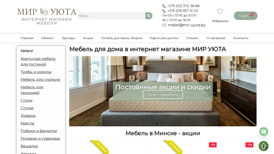 | SEO-описание | Купить мебель в Минске недорого в интернет-магазине Мир Уюта. Большой каталог мебели с доставкой по Беларуси. Скидки, рассрочка, широкий выбор для дома |