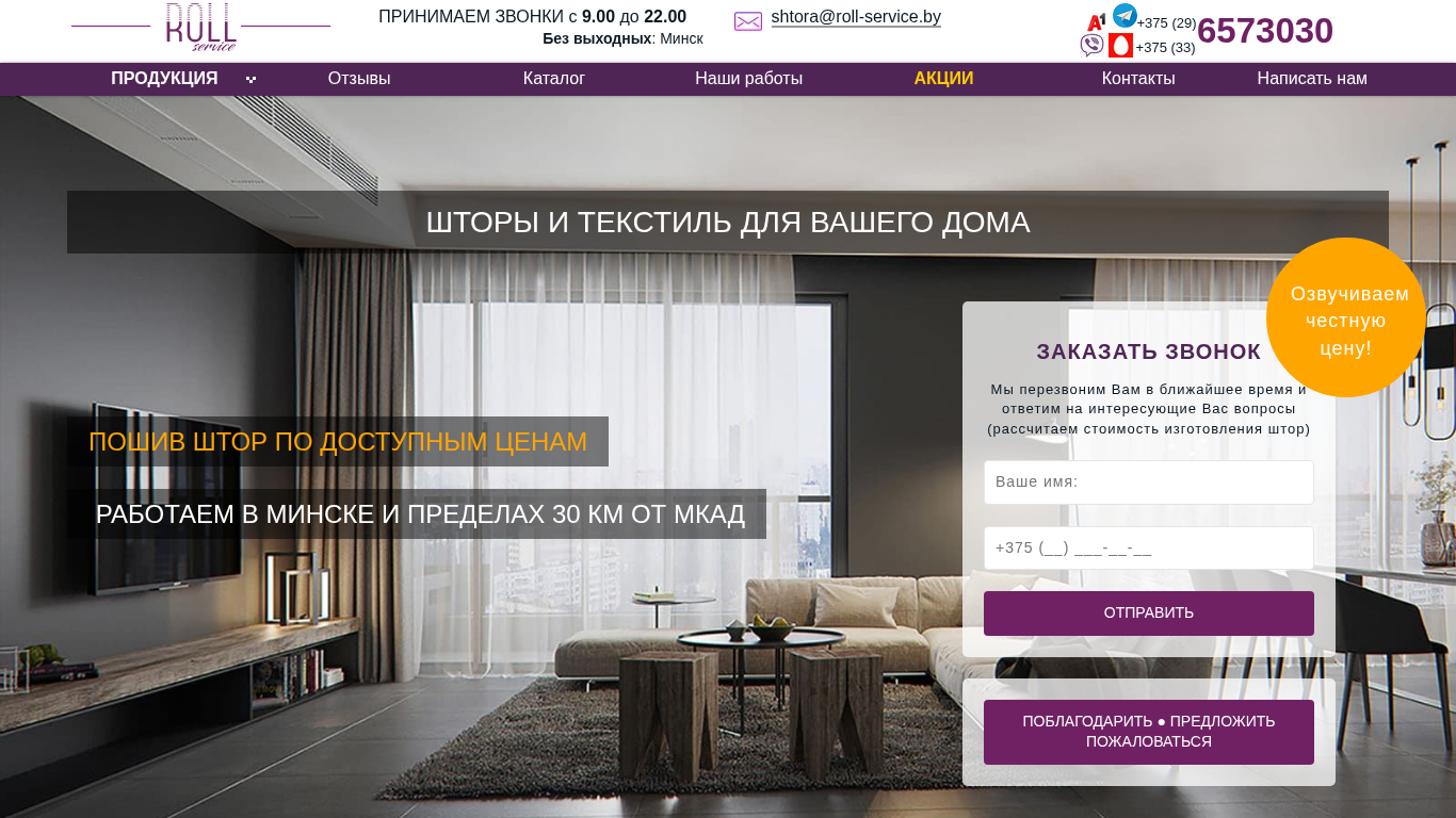 | SEO-описание | Купить шторы в Минске. ⭐ Низкие цены на пошив штор под заказ в Минске. ⭐ Купить шторы по индивидуальному дизайну. Доступные цены на пошив текстиля на заказ. ⭐ Узнать стоимость на пошив занавески можно у наших консультантов. |