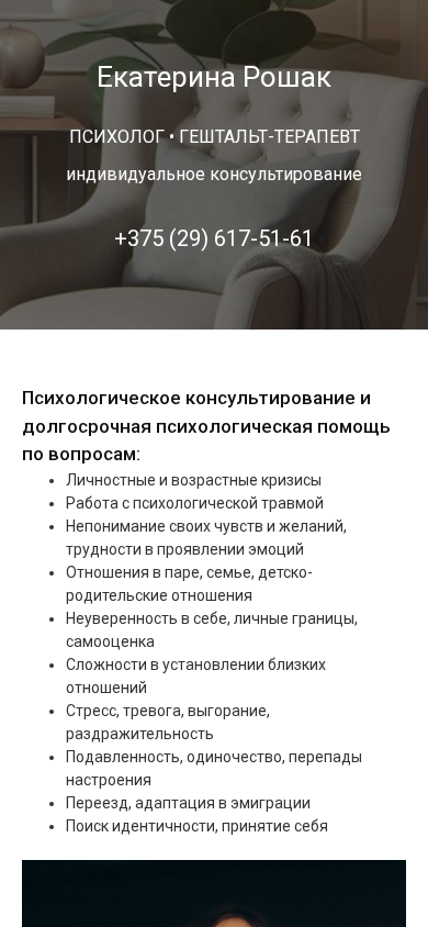| SEO-лексика | екатерина рошак консультирование 375 617-51-61 психолог гештальт-терапевт долгосрочная психологической травмой отношения мне минск работы руб viber whatsapp олеговна главная перейти |