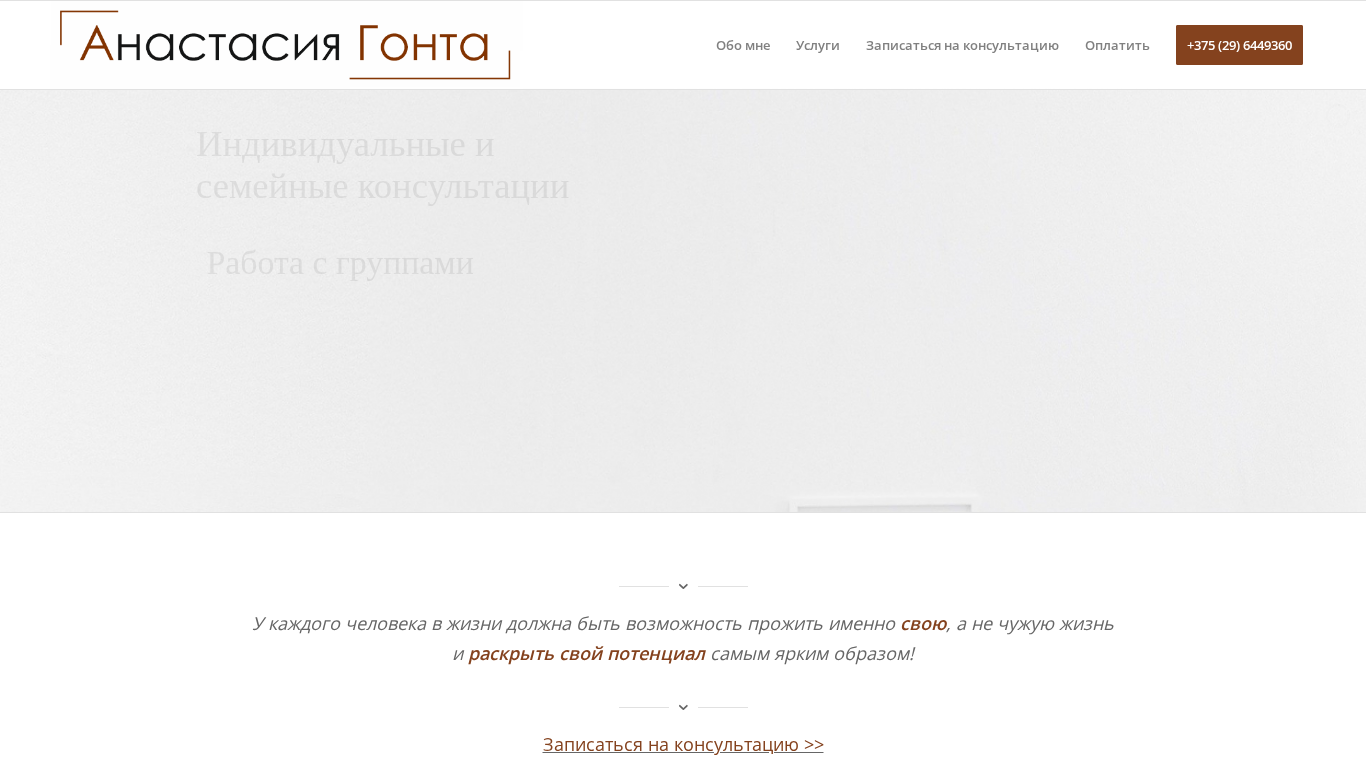 | SEO-лексика | психолог анастасия гонта индивидуальные семейные консультации работа консультацию записаться 375 группами кандидат психологических наук доцент института психологии бгпу сертифицированный гештальт-терапевт |