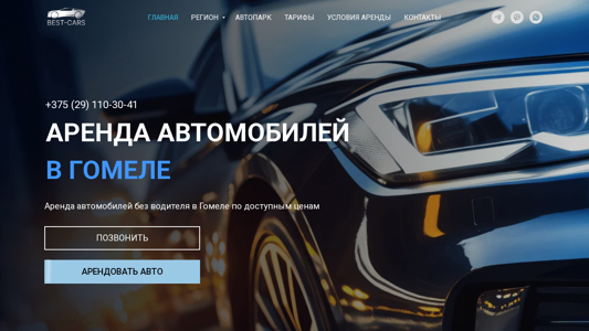 | SEO-описание | Прокат автомобилей в Гомеле на сутки, цена от 70 руб. Арендовать машину в Гомеле недорого. Компания BestCars |