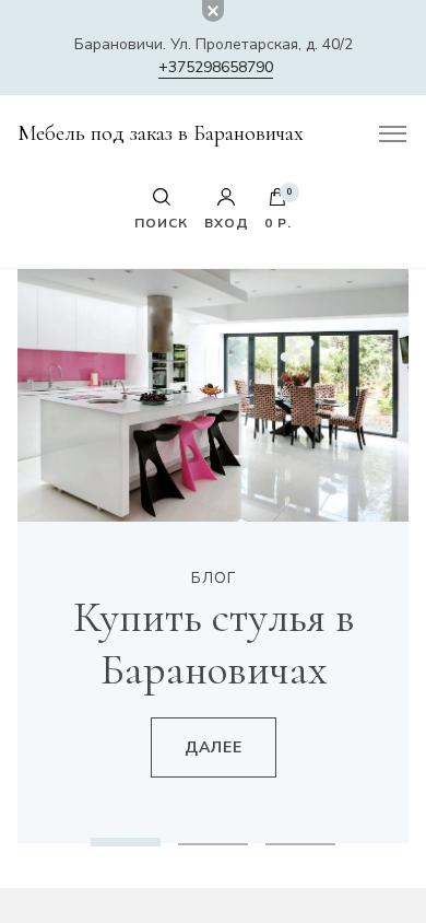 | SEO-описание | Корпусная и мягкая мебель под заказ. Кухни, шкафы-купе, прихожие, столы, стулья, диваны в Барановичах. Рассрочка, доставка, гарантия. |