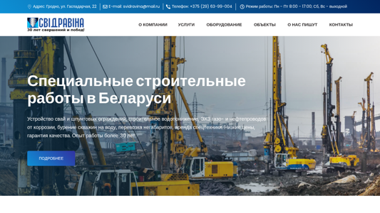 | SEO-описание | Специальные строительные услуги в Гродно, области и всей Беларуси. Устройство свай. Крупногабаритные грузоперевозки. Аренда спецтехники |