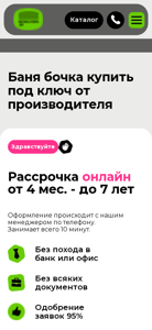 | SEO-описание | Баня Бочка купить готовые и под заказ ⭐ От производителя с доставкой и установкой ⭐ Доставка по всей РБ ✔️ Гарантия 12 месяцев ⭐ Изготовление от 2 дней ⭐ Рассрочка на 12 месяцев |