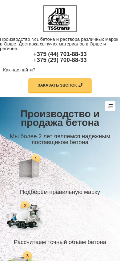 | Название / Заголовок | Бетон и сыпучие материалы в Орше |
