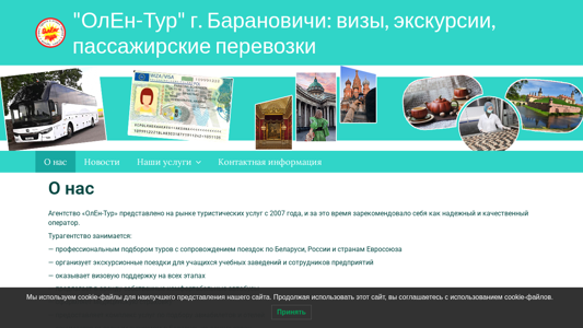 | Название / Заголовок | "ОлЕн-Тур" г. Барановичи: визы, экскурсии, пассажирские перевозки — Аренда автобусов, визовая поддержка, туры выходного дня, экскурсии, визы, сайт олен-тур |