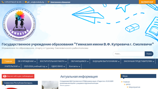 | Название / Заголовок | Государственное учреждение образования "Гимназия имени В.Ф. Купревича г. Смолевичи" – Управление по образованию, спорту и туризму Смолевичского райисполкома |