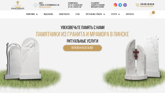| SEO-описание | Продажа и установка памятников из гранита и мрамора в Пинске. Различные варианты цветового оформления. Рассрочка до 12 месяцев. Гарантия 10 лет. Организация похорон |