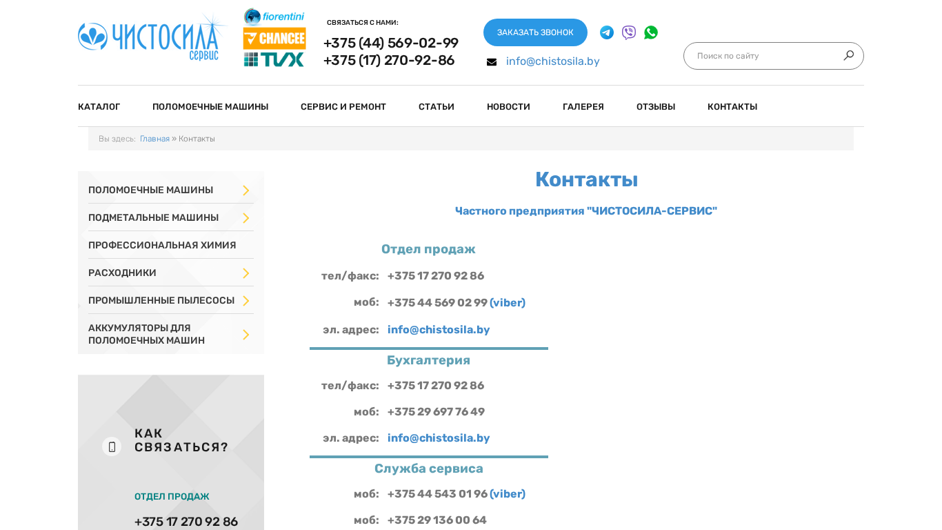 | Название / Заголовок | Контакты компании «Чистосила-сервис» - поставщика поломоечных машин. |