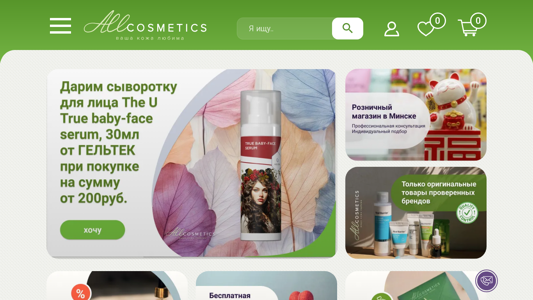 | SEO-описание | Интернет-магазин косметики Аllcosmetics | Купить корейскую и японскую косметику в Минске по доступным ценам | Профессиональный подбор косметики | 100% оригинал | Доставка по Беларуси - БЕСПЛАТНО! |