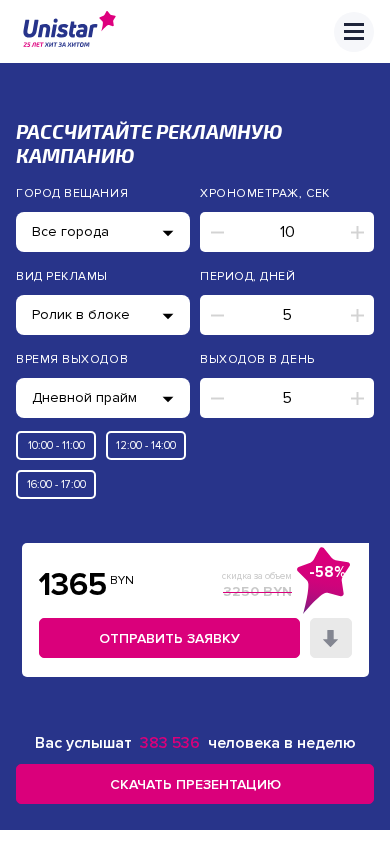 | Название / Заголовок | Реклама на радио Unistar - цены на рекламу на радио в Минске, Беларуси |