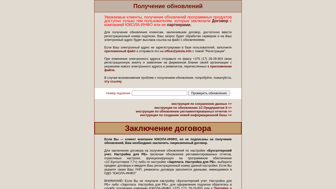| Название / Заголовок | Автоматический заказ обновления настроек 1С от компании "ЮКОЛА-ИНФО" |