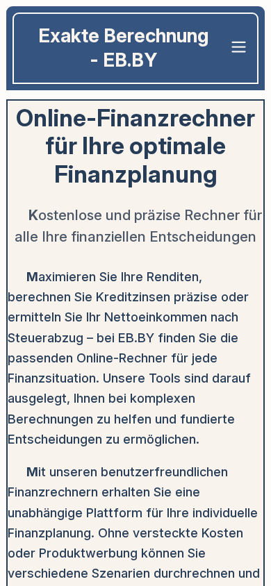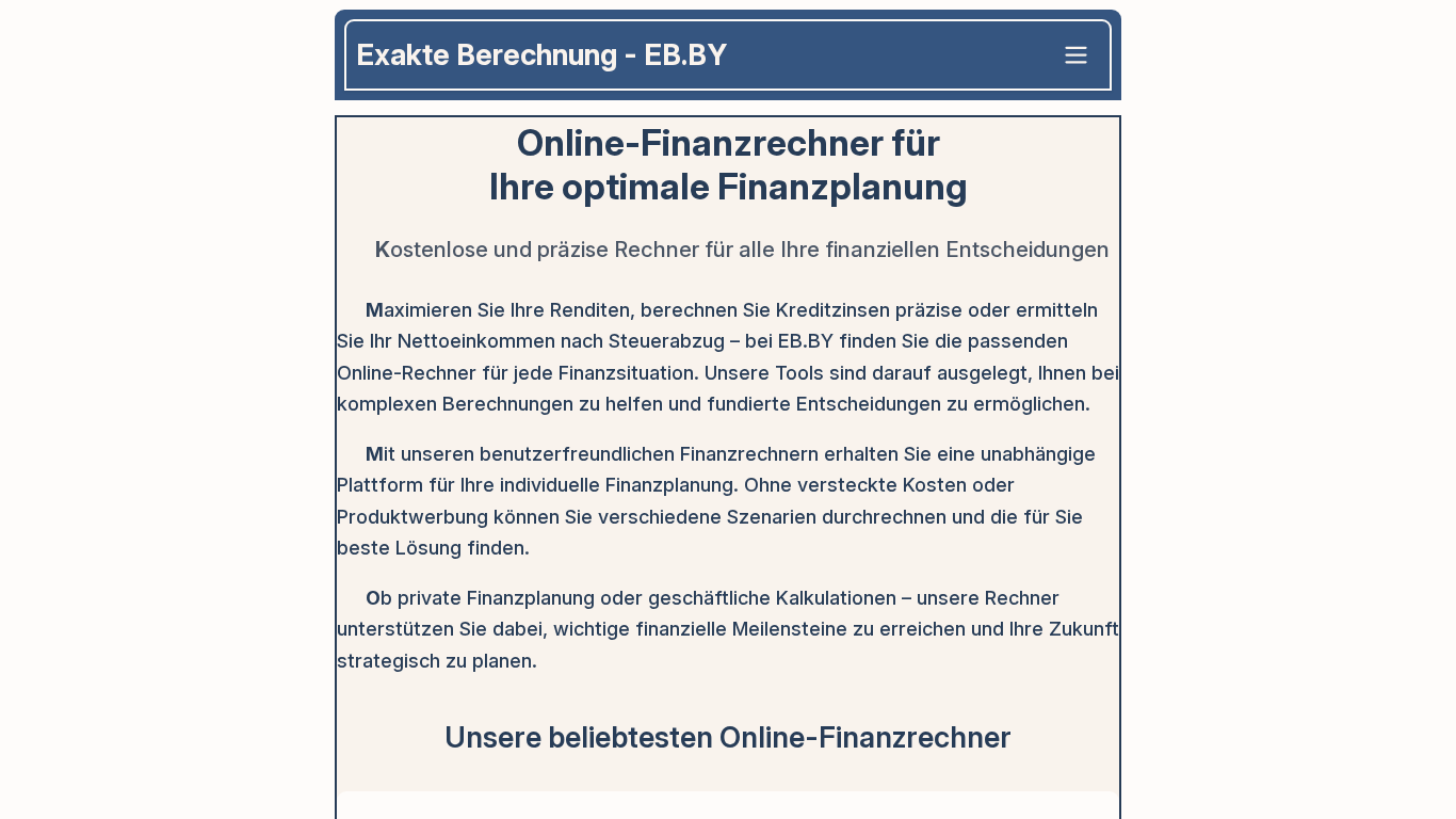 | Название / Заголовок | Online Finanzrechner - Kostenlose Rechner für Ihre Finanzplanung | EB.BY |