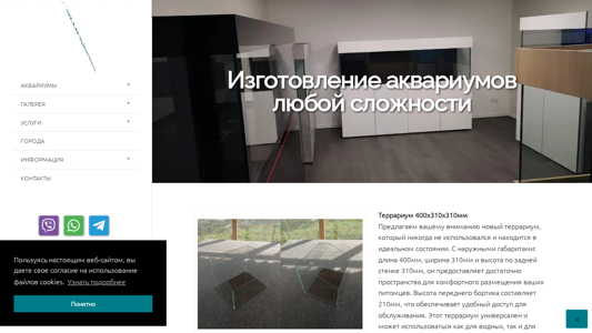 | SEO-описание | Продажа и изготовление аквариумов на заказ. Доставка, установка, комплектация оборудованием, оформление, склейка и ремонт аквариумов. Обратитесь к нам за бесплатной консультацией! 💦 |