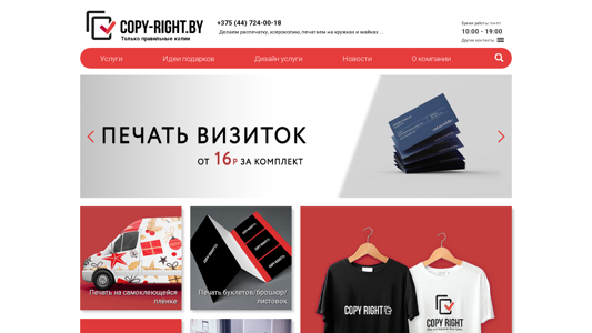 | SEO-описание | Copy Right - это центр оперативной печати (распечатки) в центре Минска. Все форматы. Печатный центр возле вокзала. |
