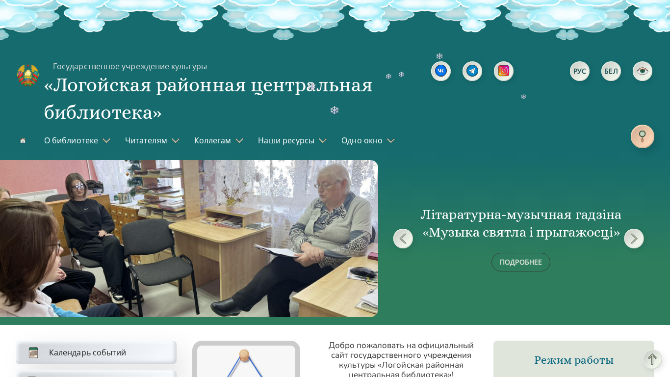 | SEO-описание | Официальный сайт государственного учреждения культуры «Логойская районная центральная библиотека» |