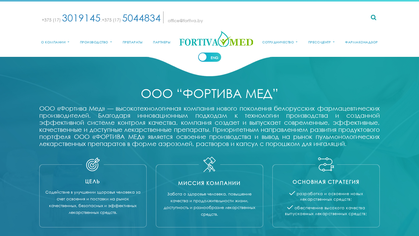 | Название / Заголовок | ООО “ФОРТИВА МЕД” - фармацевтическая компания Беларуси, производитель лекарственных препаратов |
