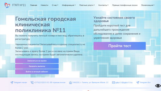 | Название / Заголовок | Главная страница — Гомельская городская клиническая поликлиника №11 |